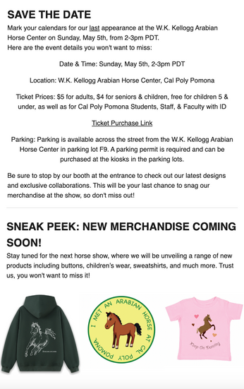 Beyond my work on TikTok, I also wrote a biweekly newsletter using Klaviyo. In these newsletters, I provided updates on our operation, including new designs, promotions, and upcoming events. These newsletters were distributed to potential purchasers, repeat buyers from Apparelscapes' Shopify store, and our newsletter subscribers.
